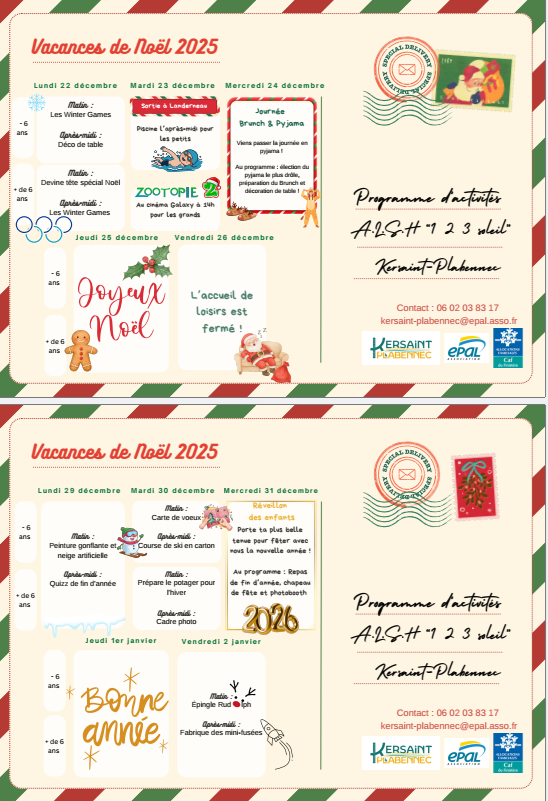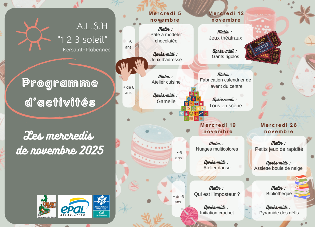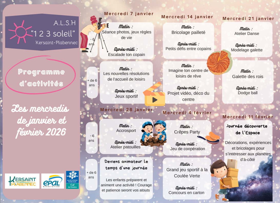 Découvrez nos programmes d'activités pour les vacances et les mercredis organisées par l'équipe de 1 2 3 Soleil - ALSH Kersaint-Plabennec.